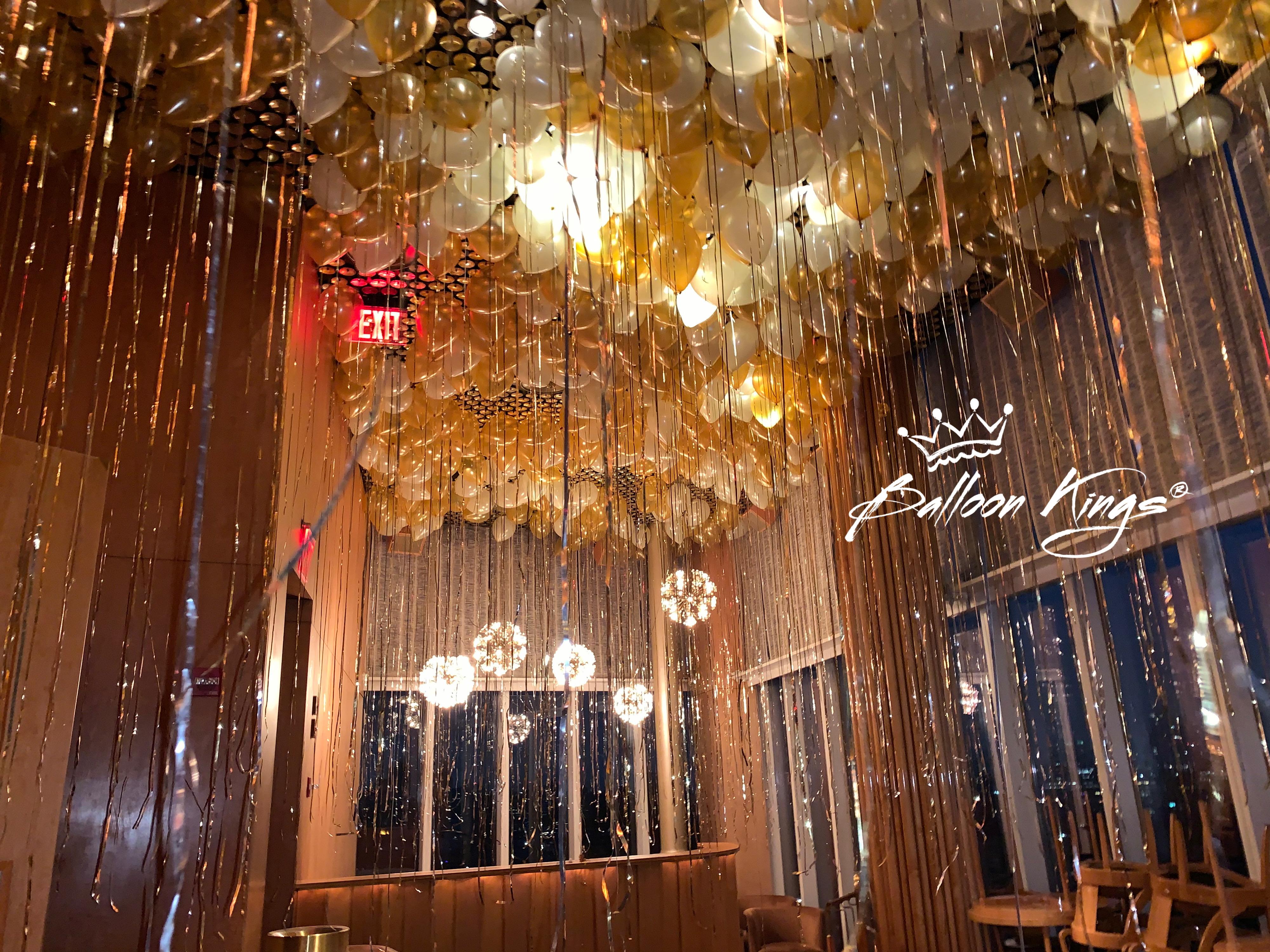 Forty-eight hours of straight blowing up, assembling, and delivering balloon happiness is rigorous, but we are happy to so to ring in the new year. Our team rotates in and out during these two busy days, ensuring everyone is well-rested and ready to go. This New Year's required the onboarding of 12 seasonal employees to keep up with demands, and they worked exceptionally hard to fulfill their important roles of bagging, delivering, and hi-floating balloons. Balloon King's worked on successfully blowing up and delivering 87 total orders, totaling approximately 28,000 balloons that exited our store. Most balloon orders consisted of at least 100 balloons or more. Balloon King's worked with large name venues such as the 230 Fifth Rooftop, The Standard - Highline, and Empire Rooftop, being apart of their celebration of the new year! These venues want their parties to be next level for their party-goers and that is exactly what Balloon King's did with The Standard - Highline's event. This order required thousands of latex white and gold balloons with long foil ribbons covering the cieling in balloons. It was truly magical for guests to walk through, mingle, and dance the night away.